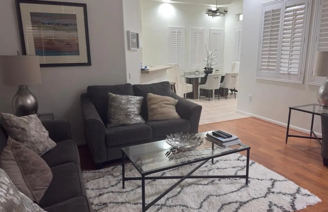 Tpc Golf Course North Scottsdale Apartment offers a balcony and a dressing room, as well as comforts like climate control. For added convenience, a separate toilet, a hot tub, and a shower are available at the property. A hairdryer, bath sheets, and towels can also be found.